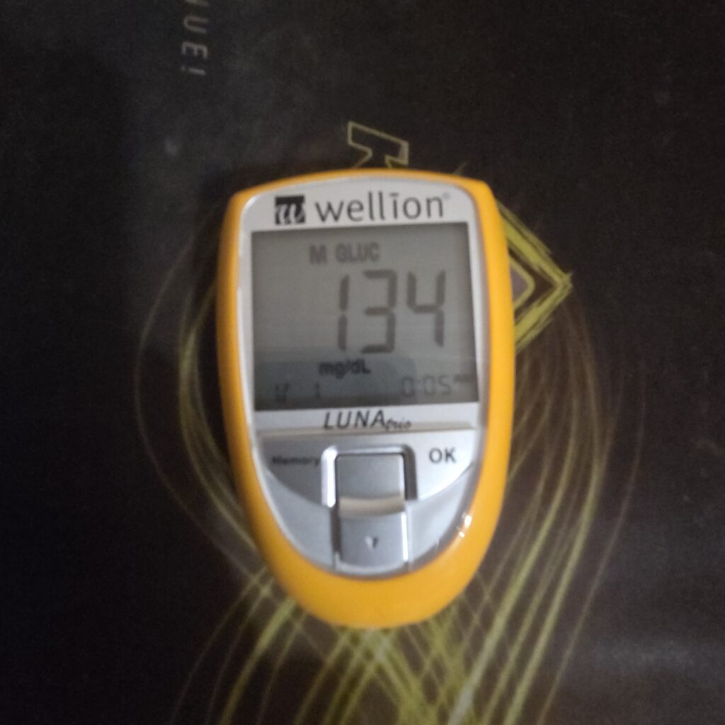 Im Gegensatz dazu könnte dieses andere Bild von mir, das von einer anderen Zuckermessung zu einem anderen Zeitpunkt stammt, für den Konsum von 2 Gramm THC ausreichen, aber ein etwas höherer Zuckergehalt ist vorzuziehen.